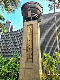 While walking along North Bridge Road, we came across Parkview Square and it instantly stood out. With its grand Art Deco design, bronze details, and towering statues, it felt like stepping into a scene from the 1930s.