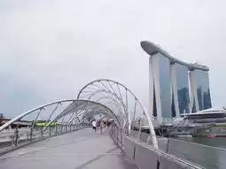 ⛲️ The Helix Bridge is the world's first double-helix steel bridge, measuring 280 meters in length. It is used for pedestrians to cross the river from Marina Centre to Marina South. The design of this bridge is inspired by the curved shape of human DNA. There are balconies extending out to the sides for tourists to stop and take photos of the bridge, with the Marina Bay Sands building as the backdrop. Especially if you visit at night, the bridge is beautifully illuminated with lights.