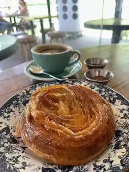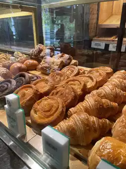 There are also many other baked goods on the menu, such as Kouign Amann and Pain au Chocolat, which are very popular here. For those wanting to try something unique, you can order Asian-French fusion flavors like pandan croissants or local twist pastries as well.