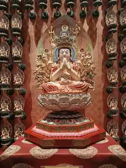 The Buddha Tooth Relic Temple in Singapore’s Chinatown is a stunning sanctuary brimming with cultural treasures. Completed in 2007, this majestic temple draws inspiration from the Tang Dynasty’s architectural style and houses a sacred relic believed to be the Buddha’s left canine tooth.Beyond its spiritual significance, the temple is a vibrant cultural hub where history, art, and devotion come together.