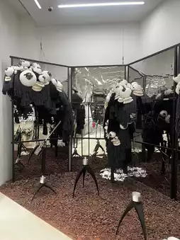 The interior, themed "Data Addicts," features eerie installations scattered under dim lighting,
