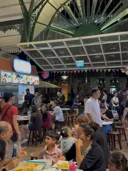 There’s a certain energy here — lively chatter, the clinking of glasses, sizzling sounds from the grills, and laughter that bounces off the historic ironwork of the Lau Pa Sat building. Despite the crowd, the space feels warm and welcoming, like a big communal feast under the stars.