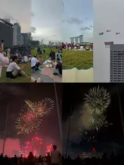 As evening approached, we made our way to the Promontory, armed with our picnic mat. The open grassy space was perfect for settling down early. Around us, families, couples, and kids filled the area with laughter and quiet chatter. We caught the helicopters flying overhead, proudly carrying the national flag, and watched jets streak across the sky in sharp formations. The atmosphere was festive but relaxed, a wonderful contrast to the busy city. When the fireworks started, the sky lit up in bursts of brilliant colors reflected on the water, making it feel almost magical. It was one of those moments where you just lie back and take it all in — the sounds, the lights, the shared joy around you.
