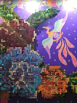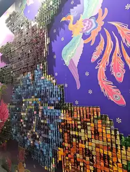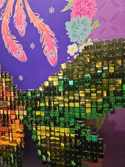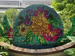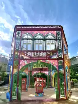 At night, a quiet garden walkway on Sentosa transforms into a glowing tribute to tradition. Soft lights dance across floral patterns, while beaded slipper designs bloom on panels that line the path. Inspired by Peranakan heritage, the space invites you to not just look, but feel textures, colors, and history coming together in a graceful display. A giant pair of beaded shoes steals the spotlight, playful yet rich with meaning. It’s not just art it’s culture reimagined in light and form, offering a beautiful pause that blends the old and the new.