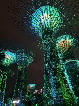 Visiting Singapore isn’t complete without experiencing the magical night show at Supertree Grove in Gardens by the Bay. As the sun sets and the city lights up, these towering vertical gardens transform into glowing giants, dancing with colors in sync with a stunning musical soundtrack. It feels like stepping into a sci-fi movie set — but surrounded by nature.