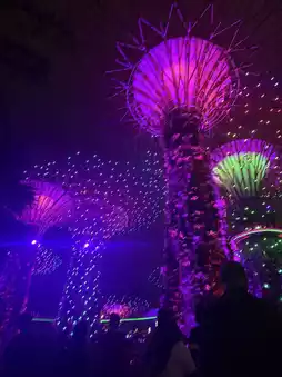 I arrived a little before 7:30 PM to get a good spot under the Supertrees. The Garden Rhapsody light and sound show happens twice every evening (usually around 7:45 PM and 8:45 PM), and the best part? It's completely free! The show lasted about 15 minutes, but it was a breathtaking experience I’ll never forget.