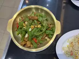 The Yang Chow fried rice came packed with shrimp, egg, and crunchy vegetables—simple, yet so comforting. But the star for spice lovers was the stir-fried pork belly with green chili. Each bite was a fiery punch of flavor, perfectly balanced by the richness of the pork.