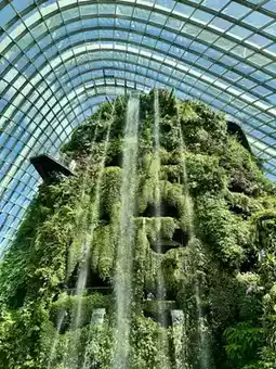 Located in the heart of Marina Bay Sands, close to the Merlion and Marina Bay Sands SkyPark, this is a giant botanical garden featuring the SuperTree Grove (giant steel trees), Flower Dome (a greenhouse with plants from around the world), and Cloud Forest (a cool mist garden with the world's tallest indoor waterfall!)