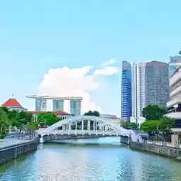 - The river view from the Old Hill St. area also offers a view of the Marina Bay Sands hotel.