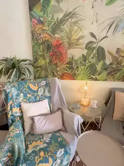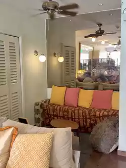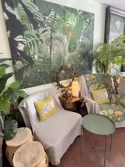 The space itself feels more like a laidback tropical lounge than a typical café. Think mismatched armchairs, rattan furniture, hanging plants, and sunny pops of colour—very bohemian, very relaxed. It almost gives off Bali villa vibes, which makes sense considering it also functions as the communal hangout for a luxury boutique hostel.