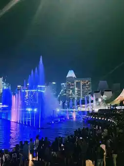 Catch Spectra, the free nightly light and water show at Marina Bay Sands! This 15-minute spectacle features dancing fountains, lasers, mist effects, and music—best viewed from the Event Plaza or nearby waterfront. Shows run daily at 8PM & 9PM, with an extra 10PM show on Fridays and Saturdays.