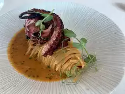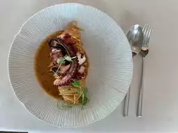 We started with their focaccia topped with San Marzano tomatoes and fresh basil—it was simple but really flavorful, like a little sunny slice of Italy. The octopus and potato salad was fresh and bright, perfect for a light starter.