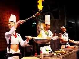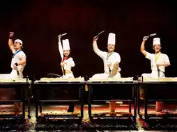 Chefs strumming spatulas like guitars, pounding ribs to a beat, flipping pans like circus acts. No dialogue needed—just non-stop laughter, thunderous applause, and maybe even you on stage pretending to stir-fry like a pro. Even introverts can’t help but smile and nod along!
