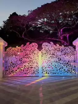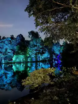 Wander through the gardens and you’ll find other installations glowing softly in the dark — perhaps a cluster of illuminated seed pods hidden among ferns, or projection art that transforms heritage trees into living canvases. One might even come across interactive pieces that respond to footsteps, encouraging a playful connection between visitors and the landscape.