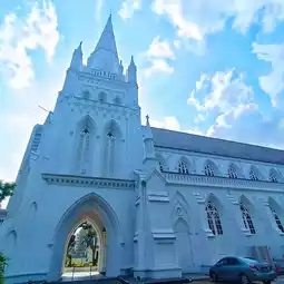 - Not far from the mosque, take the MRT just one more stop to City Hall station Exit B. Walk along St Andrew Rd. The beautiful white Gothic-style church, over 100 years old, is 2. St Andrew's Cathedral.