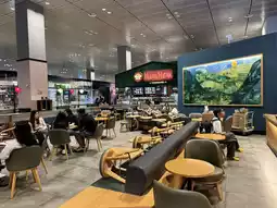 The place was quiet compared to the daytime rush, with a few travelers enjoying their drinks or catching up on work. Service was prompt and friendly, and I appreciated having a clean, well-lit space to sit down and relax before heading to the gate.