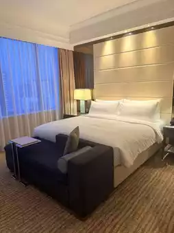 This time in Singapore, I stayed at the Marriott Singapore Tang Plaza, a hotel with an octagonal shape that's the most visible landmark in the Orchard area. It's truly a superb location! From Orchard MRT Station, take Exit 1 and you'll find the hotel right there. The hotel's ground floor is the TANG shopping mall. The entrance is private, and the lobby is magnificent. Check-in was quick. I got a room on the 23rd floor with a king-size bed, a work desk, a TV, a refrigerator, a large wardrobe, and an iron, which I really liked. The bathroom was comfortable and the shower had great pressure. The best part is that every room has a view. The breakfast didn't disappoint. The food was plentiful and very good. I was very impressed with this hotel. It was truly worth every penny.