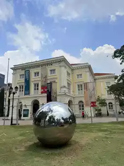 On this trip to Singapore, we stayed near Orchard Road, so we strolled around the malls in this area: Paragon, Takashimaya, and ION Orchard. There's a lovely manhole cover in front of Paragon for taking photos. Next, we took the train to Esplanade Station and walked to Suntec City. Here, we'll see the "Fountain of Wealth," a large fountain that's been recognized by the Guinness World Records as the largest fountain in the world since 1988. Then, we took the train to Raffles Place Station and walked to see the Merlion, Singapore's iconic landmark. From here, you can see Marina Bay Sands and several other beautiful buildings. Then, we walked towards the Fullerton Hotel and saw the yellow Asian Civilizations Museum. There's a glass orb in front of it, perfect for taking photos. It was fun! In the evening, we went to the Esplanade building and walked out the back to see the stunning night view. At 8 PM, Marina Bay Sands hosts the "Wonderful Full Life" light show. It's incredibly clear from here, and there aren't many people. If you're looking for photos, I highly recommend this place. It's truly beautiful.
