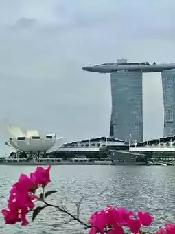 Standing by the waterfront, you get the perfect view of the Marina Bay Sands and the ArtScience Museum, with the Merlion fountain right in front of you. The flowers along the bay add a pop of color, making every corner picture-perfect 🌸.