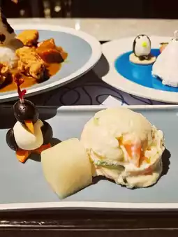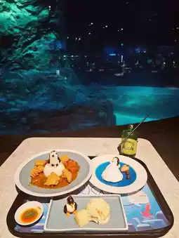 Highlights: penguin themed food and snacks, real penguins swimming in the tank located in the middle of the restaurant