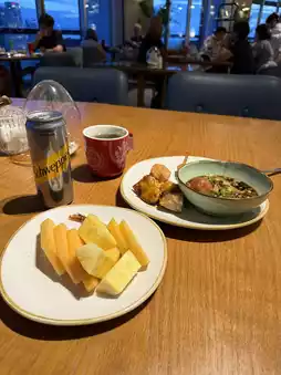 The lounge itself is spacious, elegant, and super comfortable—perfect for both winding down or pretending you’re doing “serious work” with a glass of wine in hand. The evening cocktails and canapés feel more like a curated dining experience than a typical lounge spread, and the service is warm without being over the top.