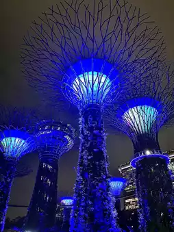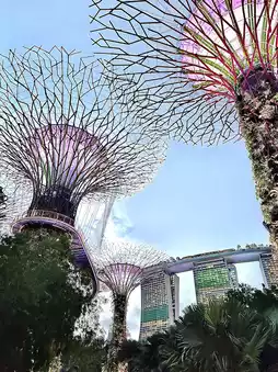 One of the must-see landmarks in Singapore is the Supertree Grove at Marina Bay, the most iconic feature of Gardens by the Bay. These massive artificial trees, rising 25 to 50 meters tall, combine vertical gardening with eco-friendly technology. Not only does they exude a futuristic look, they also harvest rainwater, solar energy, and even assist with ventilation. They're truly spectacular even during the day.