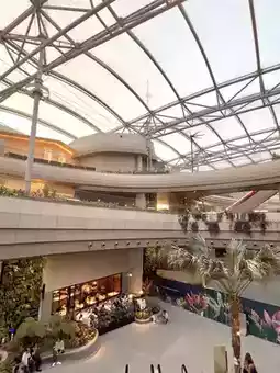From the moment we entered, the architecture stood out. The design embraces Singapore's tropical identity, featuring soft curves, layered landscaping, and open-air walkways that blend indoor and outdoor spaces. Cascading plants link the levels, creating a sense of continuity and harmony with nature. Materials like stone, wood, and water echo the island's natural forms, grounding the space in its environment.