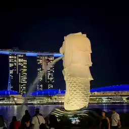 Merlion Park and Clarke Quay are iconic attractions located in the heart of Singapore, near Marina Bay and along the Singapore River. Merlion Park is famous for its 9-meter-tall Merlion statue, built in 1972, symbolizing Singapore's transformation from a fishing village to a modern city. The statue, which features a lion's head and a fish's body, spouts water into the bay, embodying the nation's identity.