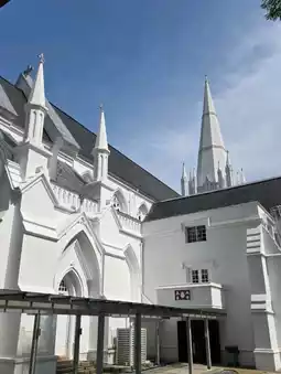 Located along St Andrew’s Road in the heart of Singapore’s Civic District, St Andrew’s Cathedral is the country’s oldest Anglican church. Its striking white facade and towering spire make it a standout landmark near City Hall MRT.