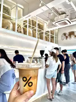 The weather in this area is often hot, with strong sunshine and bustling streets full of exotic charm. Admiring the Arabian-style architecture while sweating through the streets can often leave you exhausted. Stepping into % ARABICA during this time of year will instantly give you a refreshing sense of relaxation.