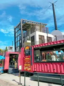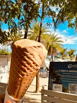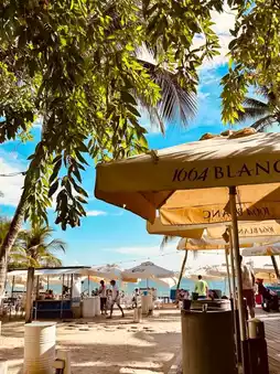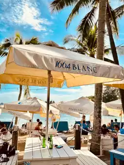 Think golden sands, palm trees, fun beach clubs, and calm blue waters – a perfect tropical getaway without leaving the city 🌴🍹.