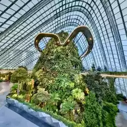 The Cloud Forest, located at Gardens by the Bay in Singapore, is a mysterious indoor rainforest greenhouse. Enjoying a cool, cool atmosphere, you're immediately greeted by the breathtaking 35-meter-high "Cloud Mountain Waterfall," shrouded in mist and creating a fairytale-like experience. Winding up along the elevated walkways (Cloud Walk and Treetop Walk), you can get up close to a variety of alpine and tropical plants, including orchids, carnivorous plants, ferns, and mosses. The Cloud Forest blends nature and technology, offering interactive exhibits that explore global climate change and the importance of rainforest conservation, making it an educational and entertaining experience. Whether daytime or nighttime when illuminated, it's a must-see destination.