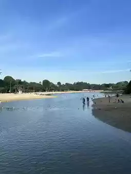 The beach itself is gracefully curved, with fine, soft white sand. The shallow waters are clear and safe, making it ideal for children to play and splash around. Flanked by lush greenery, the beach offers natural shaded areas. You can bask in the sun on the sand or dive into the excitement of water sports.