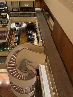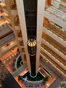 ◾ Pure white spiral staircase + golden birdcage capsule elevator, vintage and luxurious! You can get a 360° view of the entire lobby from the elevator, feeling like a princess👑