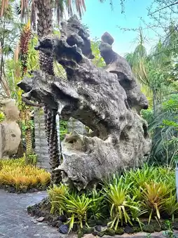 Among the rugged, unique and imposing rock formations of The Canyon, a striking dragon sculpture emerges, blending myth with nature. Its winding body seems to rise from the stone itself, as if alive and guarding the landscape. The interplay of textures, the rough rock against the sculpture’s flowing form, creates a scene both powerful and enchanting. Walking past, you feel as though you’ve stepped into a legend, where art and geology breathe life into ancient tales.