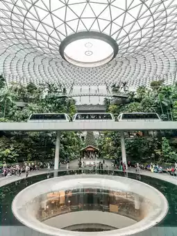 ▸ The world's first airport-based tropical rainforest, with a waterfall pumping 18,000 tons of recycled water per hour.