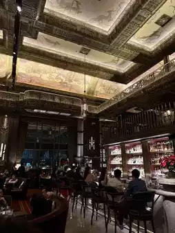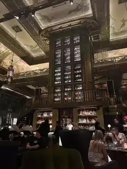 Located within the historic Palladian Palace, the 12-meter-high gilded dome and antique 1920 champagne cart recreate the opulent scenes from "The Great Gatsby." The world's largest gin wall houses over 1,300 gins, while velvet sofas and a black onyx bar showcase the pinnacle of Art Deco.