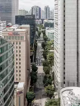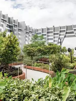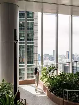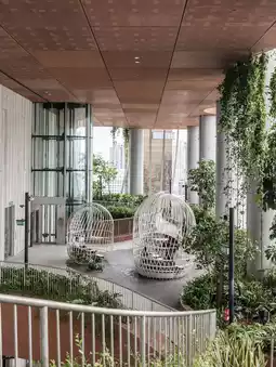 A 51-story skyscraper houses an 18-story "Green Canyon," with four skywalks weaving through 7,000 tropical plants. The rooftop starlight bar offers a 270-degree city skyline view, while floors 17-20 feature a reservation-only sky farm.