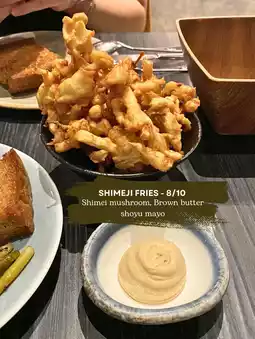 🍄🟫 Shimeji fries - crispy and light. The savoury brown butter shoyu mayo was yum