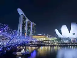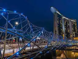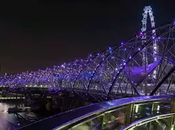 This pedestrian bridge connects the Marina Bay area, boasting a unique design inspired by the structure of human DNA. At night, LED lights reflect on the water, creating a magical atmosphere and making it a popular photo spot.