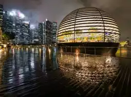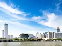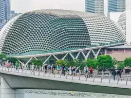 Locals call it the "Durian Theatre," and the Esplanade is Singapore's premier performing arts center. It hosts a variety of performances, including opera, concerts, and ballet. Its domed exterior is a silvery hue during the day and illuminated at night. The adjacent promenade offers panoramic views of Marina Bay.