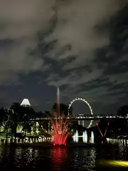 Singapore never fails to amaze me — and Gardens by the Bay is one of those magical places that truly captures the city’s futuristic charm. Standing beneath the Supertree Grove, surrounded by glowing lights against the night sky, it felt like stepping into another world. The music, the colors, and the energy of the light show were absolutely breathtaking. 🌿🌌