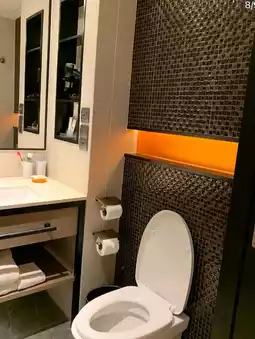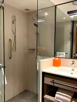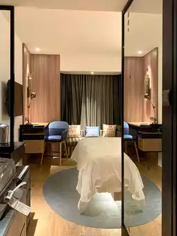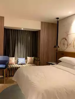 The hotel's ambiance is modern and contemporary with a subtle Asian flair. The open lobby features a co-working space and a small bar for those working remotely. The rooms are decorated in warm tones and offer a choice of city or garden views. The beds are soft and the pillows are great for a good night's sleep! 😴