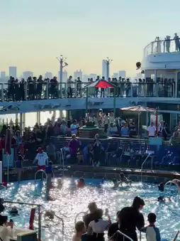 Afternoons were all about relaxation. I spent hours in the Solarium pool, where sunlight filtered through the glass dome — it felt like swimming inside a dream 🌞🏊♀️. Sometimes I joined a dance class or watched families play on the FlowRider surf machine. There was always something happening — you could never be bored here.