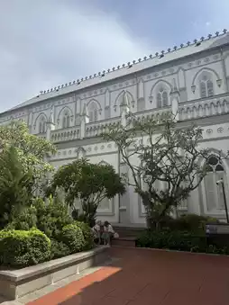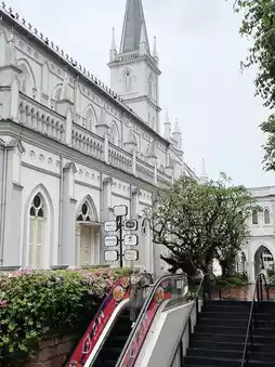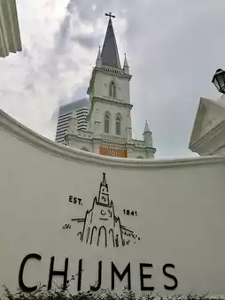 CHIJMES (pronounced "Chime's") is a century-old church that has been renovated into a luxurious restaurant and cafe complex in the heart of Singapore. The atmosphere during the day is calm and classic European, but at night, it becomes incredibly romantic, with warm lights surrounding the white church, reminiscent of a movie set. 🎥