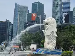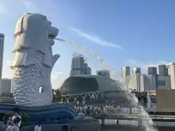 - The 8.6-meter-tall statue with a lion's head and fish's body stands majestically at Marina Bay.