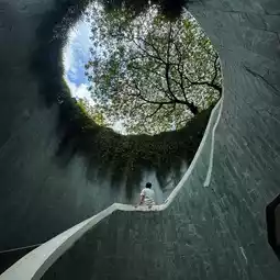 This unassuming little tunnel actually leads to a magical hidden spot. Looking up from the bottom of the spiral staircase, one feels embraced by towering tree canopies and vines, forming a breathtaking "Well to the Sky" scene.