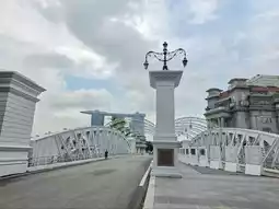 There’s a serene charm along the Singapore waterfront near The Fullerton Bay Hotel on an overcast afternoon. As grey clouds drift across the sky, the Marina Bay skyline glows softly in diffused light, with the Merlion, Clifford Pier, and Marina Bay Sands framing the scene. Locals and visitors pause to admire the gentle lapping of the water, snap moody photos, or enjoy an iced latte under the awnings—a perfect blend of calm, cityscape, and fleeting tropical ambiance.