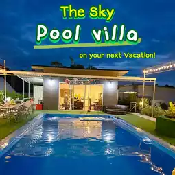 The sky villa, Singhanakhon, Songkhla Province is a fairly large pool villa. There are 4 houses for 2 people with private bathrooms, 2 more large domes, and a living room area where you can sing karaoke. The rooms are quite large and spacious. The kitchen equipment is complete. The disadvantage is that there are too many flies and it is not on the beach. The alley to get in is quite narrow. You may drive a little further. But if you get in, it is considered a private area because the area is all ours. It can accommodate about 20 people and can hold a party.