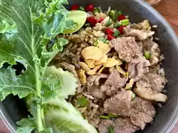 Halal Cafe at Khao Singhanakhon, Songkhla. I'd say everything is good. Good atmosphere, a wide variety of food. The shop is decorated cutely in Japanese style, with plenty of photo spots. There are many dishes that adapt local menus to choose from. The drinks are delicious. There is enough parking for customers who come to use the service. Regarding the service, all the staff are very attentive to customer service. They always have smiling faces. This is another shop that I'd like to recommend. #Get a discount, not relying on luck.